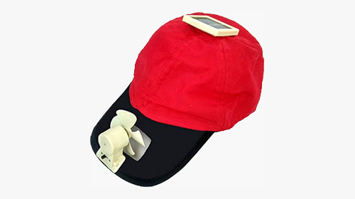 Uniquely crafted caps, which have fans that work when exposed to sunlight